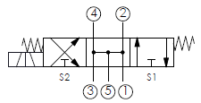 Direct-acting, directional spool valve, 5-way, 3-position, spring centred | Main Code | Flow(l/min) | Pressure(bar) | Cavity | ES-10W-5C-Y-Z-05 | 20 | 350 | 10W-5 |