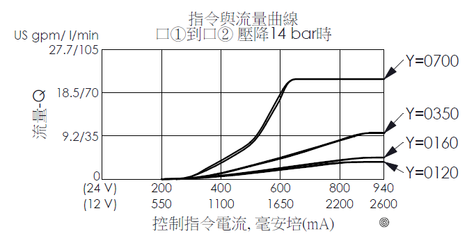 此閥為直動型、滑軸結構、常閉比例流量控制閥。斷電時,閥件受彈簧壓力控制而關閉。通電後,電流按比例開啟滑軸,以控制從口1到口2的調節流量。當壓降較大時,此閥的口1到口2有自我壓力補償的性能。口2到口1方向無自我壓力補償。如需有更精確流量比例控制需求(口1到口2,或口2到口1),建議搭配Winner全系列壓力補償器。