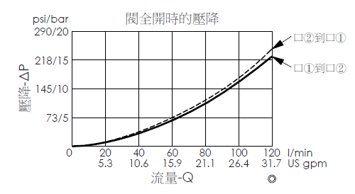 此閥為非平衡提動軸結構的邏輯閥,當在口1和口2施加壓力時,受彈簧控制於關閉位置。當在口3施加足夠的壓力時,閥件會打開。要保持閥件開啟,口3的作用力和彈簧力必須超過口1和口2的作用力總和。