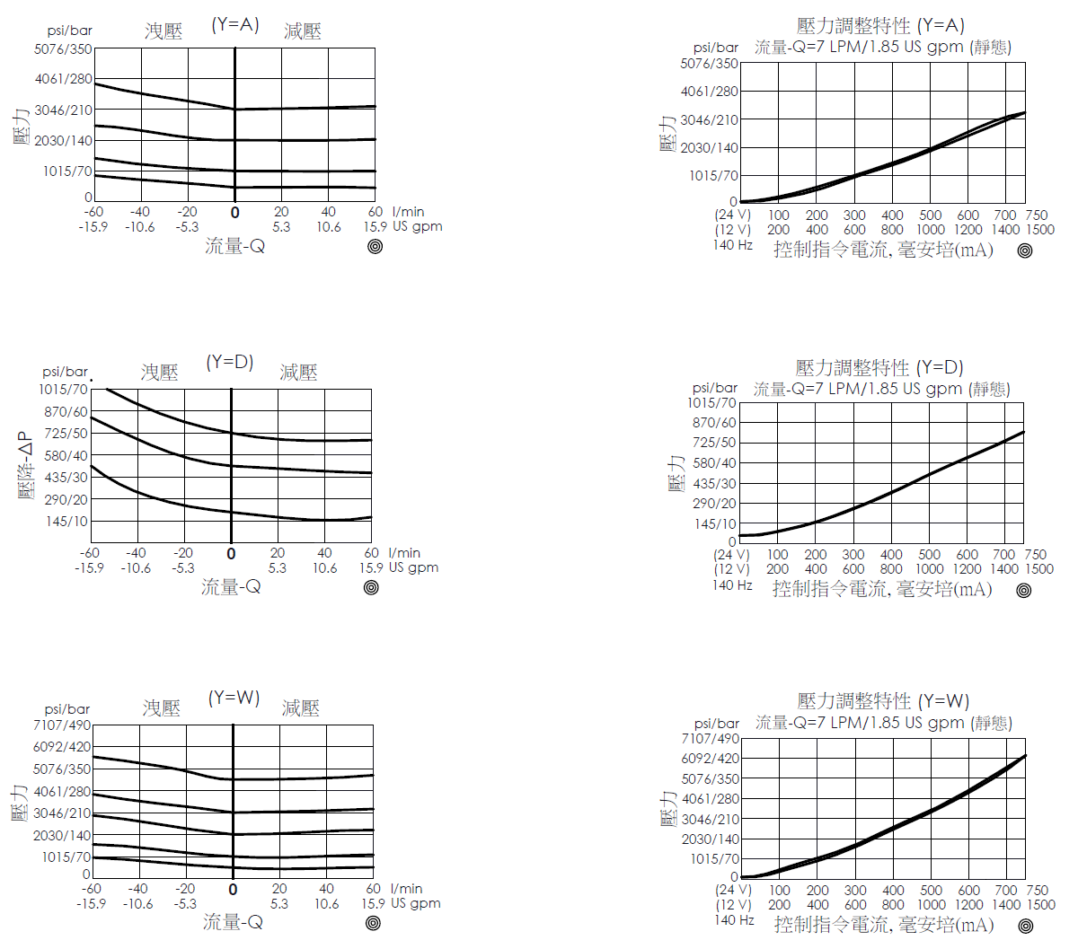 此閥為導壓操作型、滑軸結構、比例減壓/釋壓閥,透過可變的電輸入在特定範圍內無限調節,調節壓力與輸入的電流成正比。當電流施加到線圈時,允許從口2流向口1,直到足夠的壓力施加到口1來克服電磁力,閥件切換關閉口2,並允許從口1流向口3。