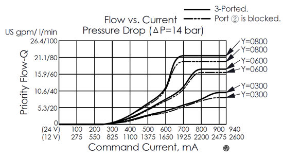 This is a direct-acting, spool-type, normally closed, pressure compensated electro-proportional priority flow control valve. It controls flow to the priority port (port 3), with excess input flow bypassed to port 2. Once the bypass port is blocked, it functions as a two-port, electro-proportional, pressure-compensated flow control valve, regulate the flow from port 1 to port 3. Flow from port 3 is proportional to current applied to the solenoid.