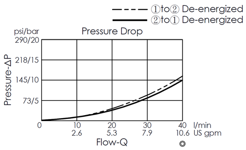 This is a pilot-operated, poppet type, 2-way 2-position, normally open solenoid valve, designed for applications requiring virtually zero internal leakage. When de-energized, flow is allowed in both directions. When energized, it allows flow from port 1 to port 2, while flow port 2 to port 1 is restricted by the check valve.