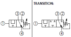 Direct-acting, 3-way 2-position, port 3 to port 4, shift port 2 to port 3 |